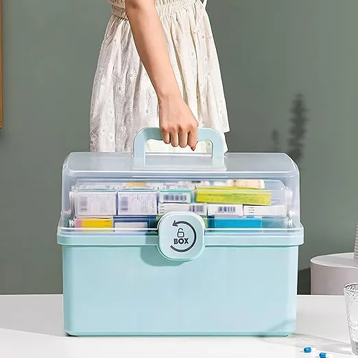 Medicine Box, 3 Levels, First Aid Box, Portable Folding Storage Organiser Box, Lockable Medicine Cabinet, Plastic Medicine Box (Blue, 34 x 19 x 21.5 cm) Description Colour : Blue Material :... Read More