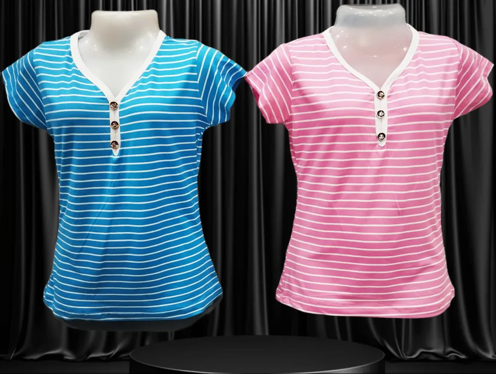 Kids Casual Cotton T- Shirts, Nack Button Short Sleeve Horizonatal White Stripes. T Shits (Age 4-6) Description Fabric type : Cotton Age : 4,5,6 Years Available Colours : Blue, Pink, Ligh... Read More