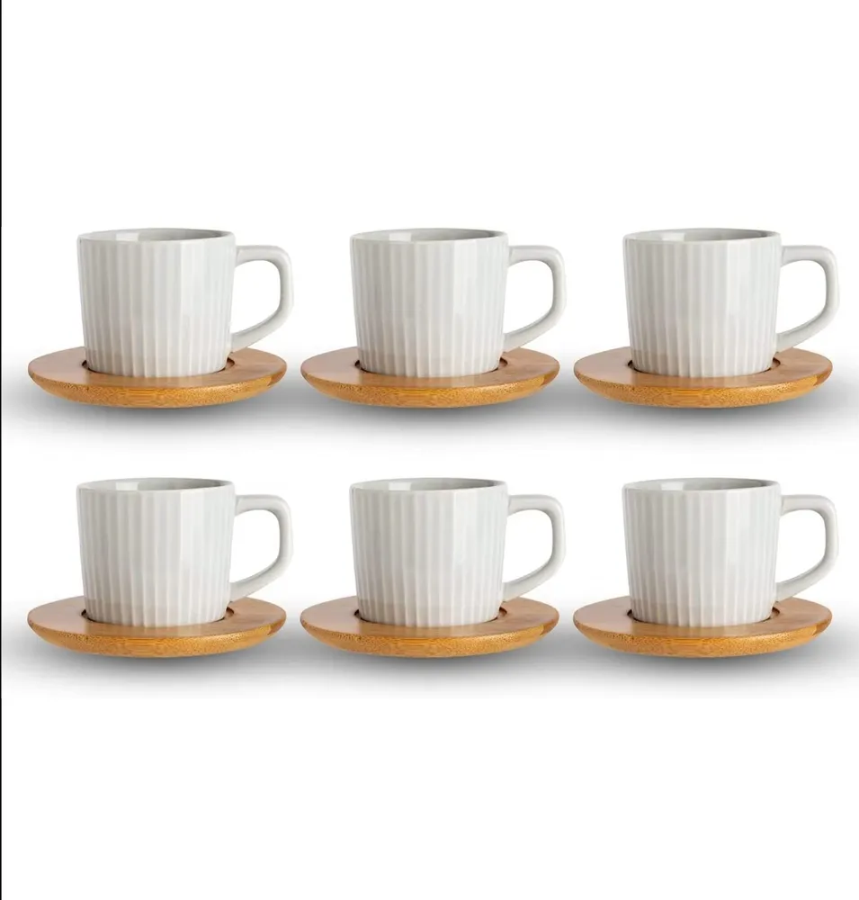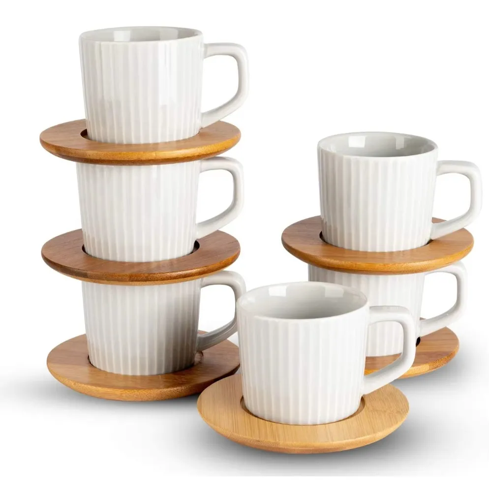 These espresso cups are in the right size and thickness to keep the coffee warm. The saucers are wide and flat enough to make the whole coffee sets stackable to save space. The embossed vertical lines... Read More