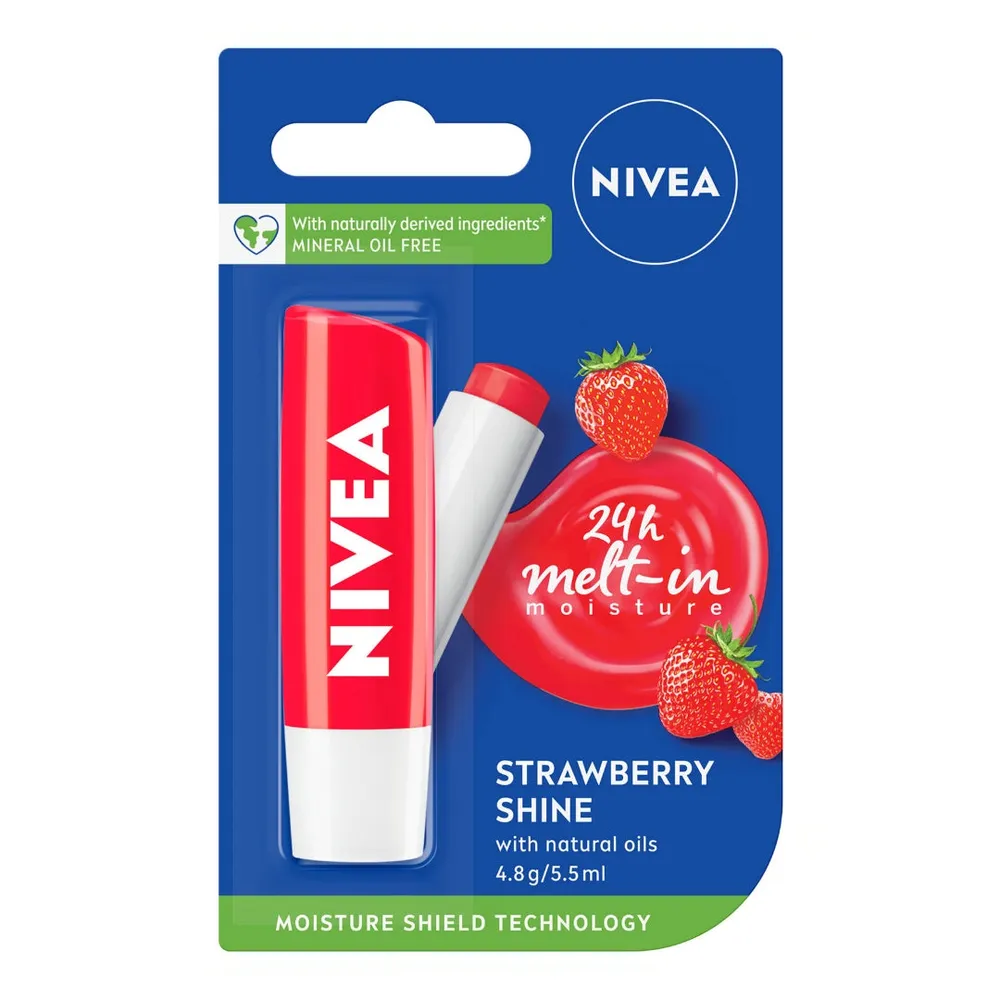 NIVEA Lip Balm Fruity Shine Strawberry – 4.8g | Moisturizing & Glossy Lip Care
