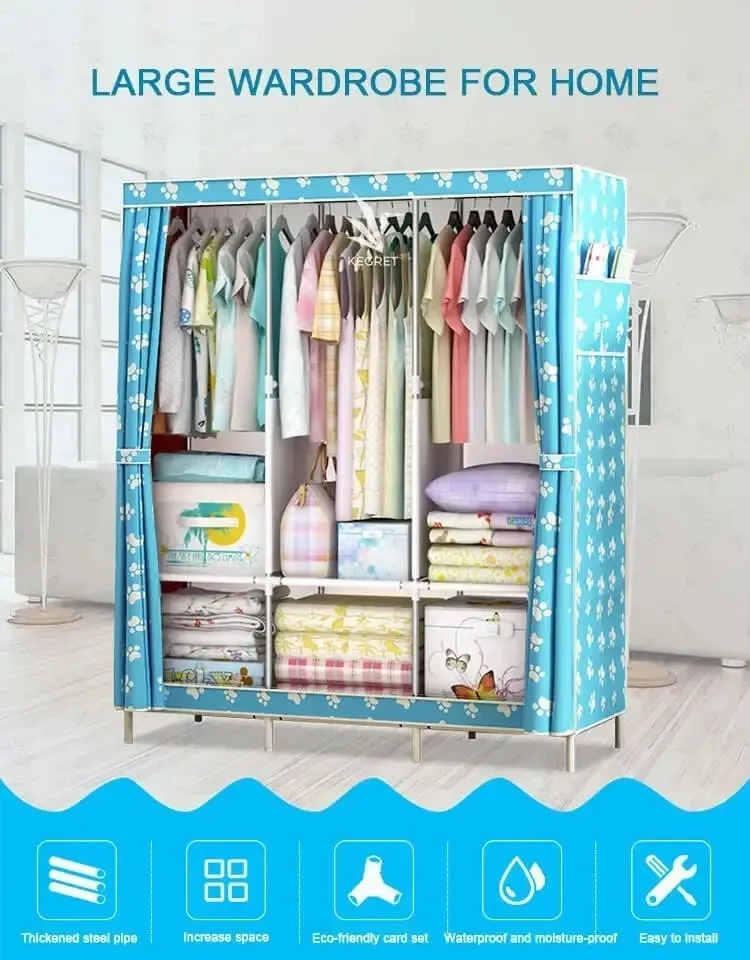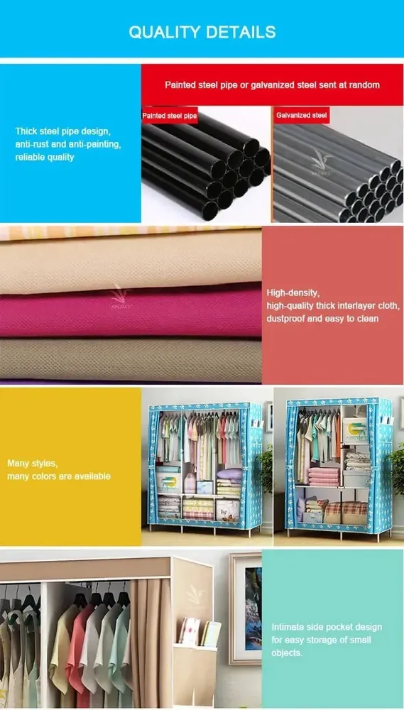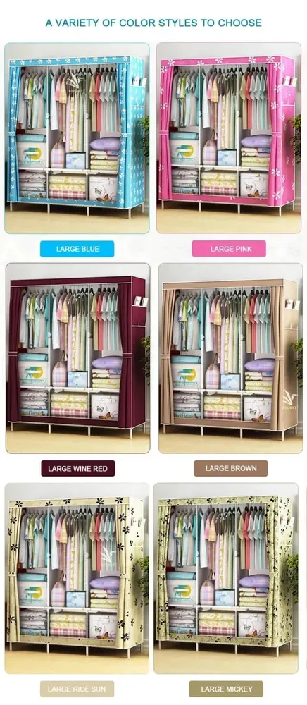 High capacity dust proof clothes cabinet wardrobe closet student dormitory cloth storage wardrobes |Double Cloth Wardrobe Fabric Steel Tube DIY Assembly Closet Bedroom Clothes Hanging Storage Wardrobe... Read More