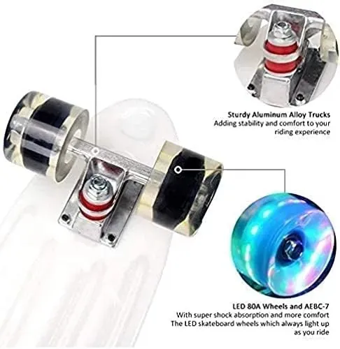 Portable Skateboard, 22"x 6" Light Flashing 4 Wheels Skate Boards, Mini Cruiser Skateboard, Beginners Longboard, for Kids/Adults - Black |KU45K|.