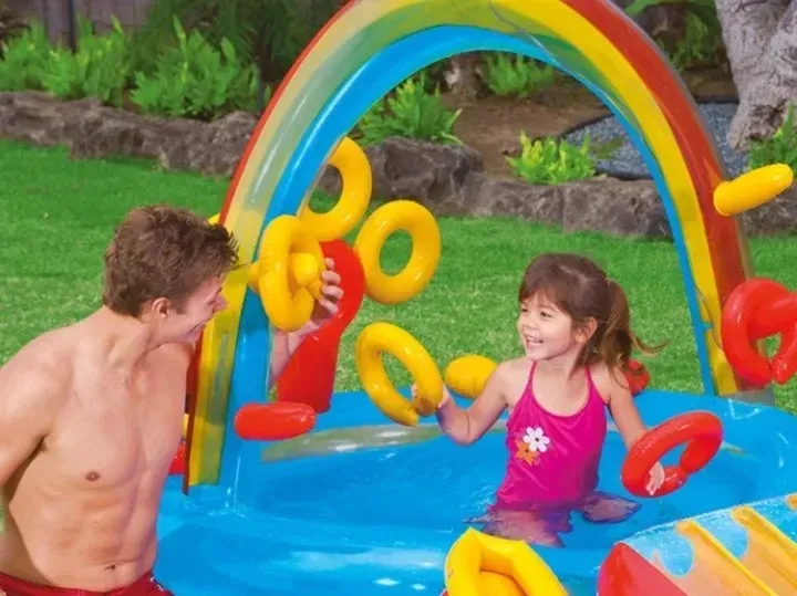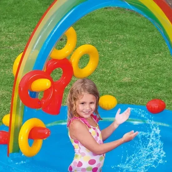 Measurements: 297 x 193 x 135 cm Capacity: 227 liters Maximum load: 81 kg Refreshing shower placed on top of the rainbow Game of rings (rings included in the package) Ball slides on the... Read More