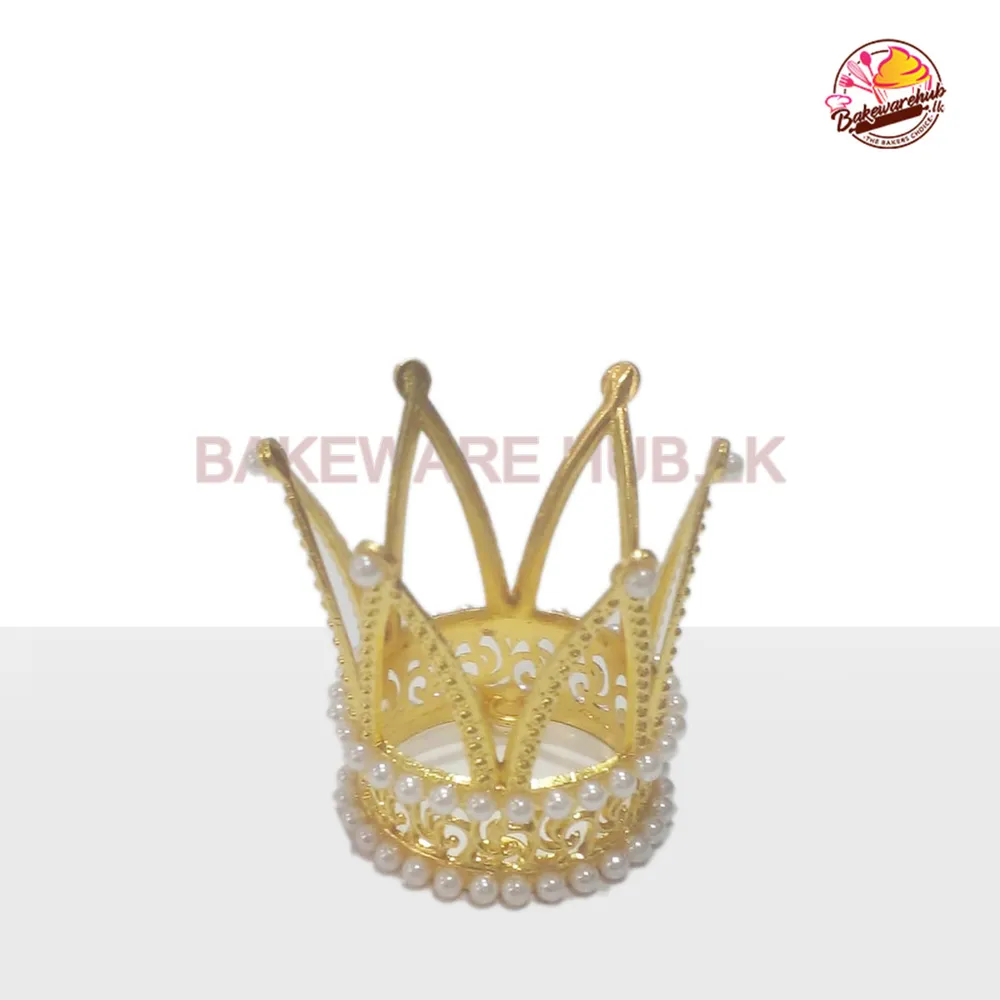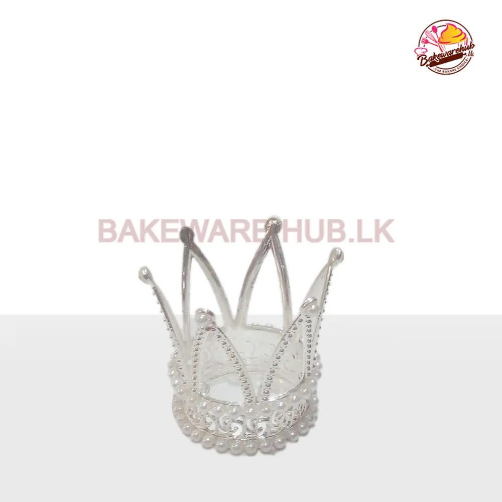 Crown Topper – Small Metal | White Beads | 6cm Height × 4.5cm Base | Elegant Cake Ornament for Birthdays & Weddings