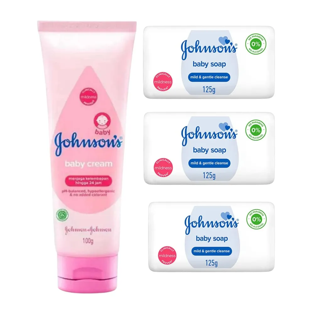 Johnson's Combo Baby Cream - 100g And Soap - 125g x 3pcs