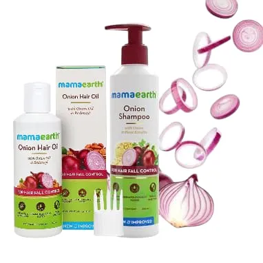 Mamaearth Onion Shampoo 250ml & Hair oil 100ml Combo For Hair Fall Control REDUCES HAIR FALL: Onion reduces hair fall, provides nourishment, and helps in the growth of lost hair. ... Read More