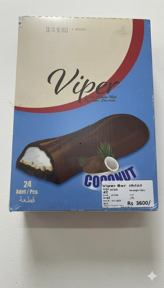 Viper Stick Coconut – 20g x 24pcs Box | Crispy Coconut Chocolate Sticks