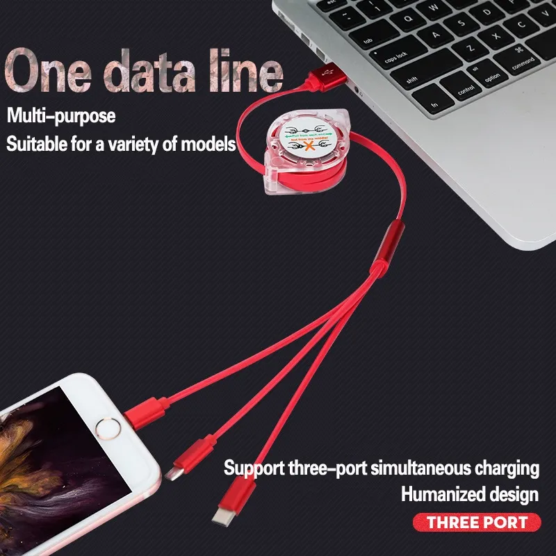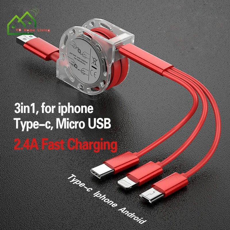 [YD]3 In 1 Retractable Micro USB Charge Cable Multi USB Charger Cable USB Type-c Universal