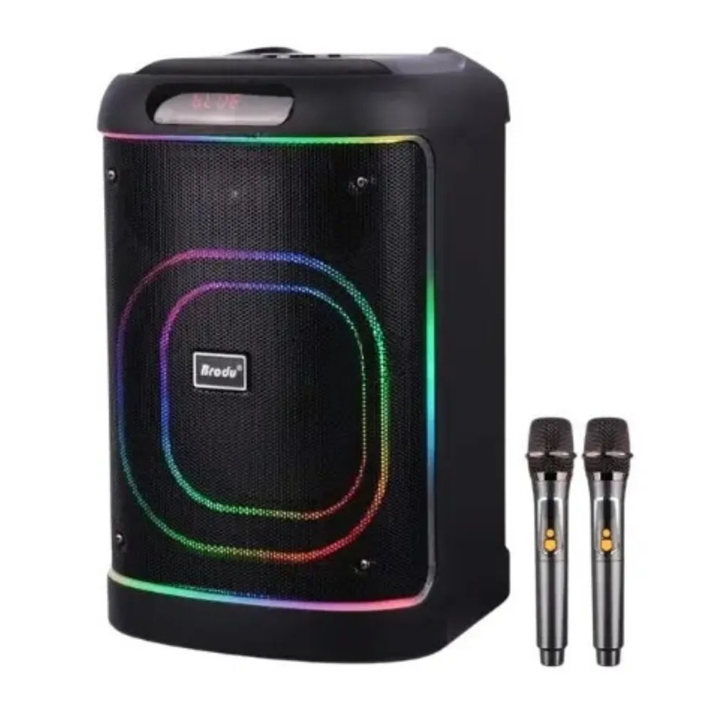 Brodu BTS 2105 Wireless Speaker - 8" Bluetooth Karaoke Speaker with Dual Wireless Mics & RGB Lights
