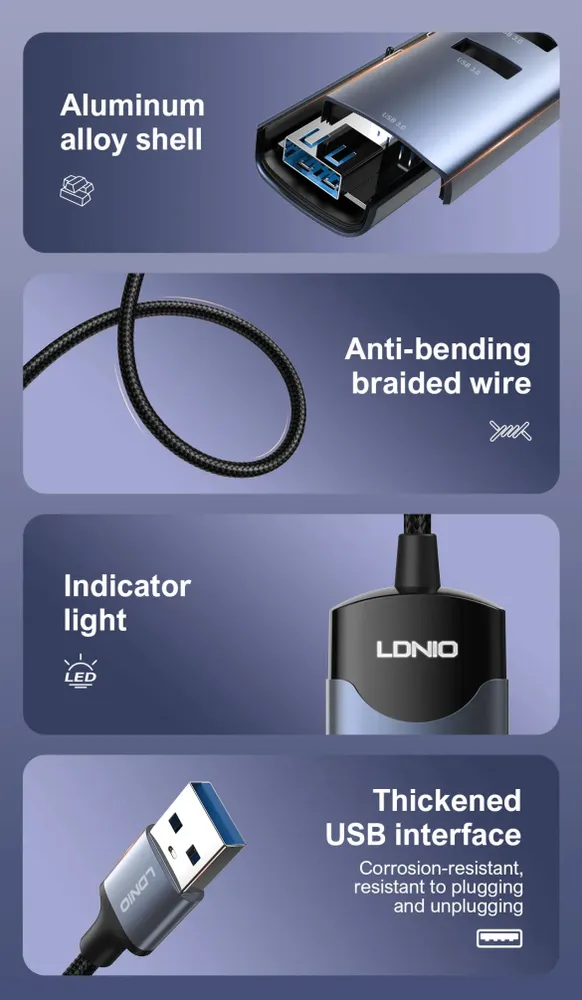 LDNIO DS-134U USB-A 4-IN-1 Hub | USB 3.0x4 Multiport Adapter