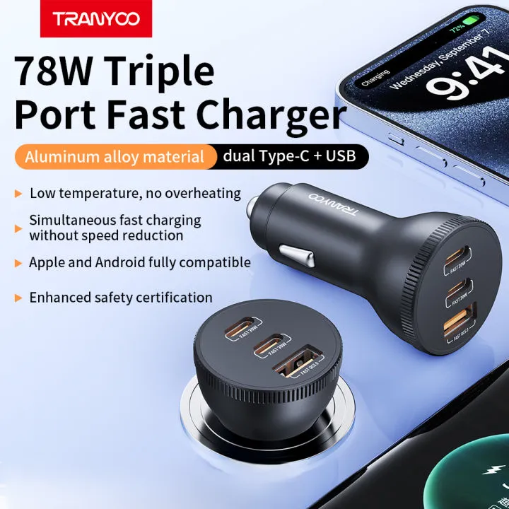 Super fast PD car charger with dual Type-C USB ports Supports up to 78W power output for rapid charging Compatible with most smartphones and devices including iPhone and Android Compact and l... Read More