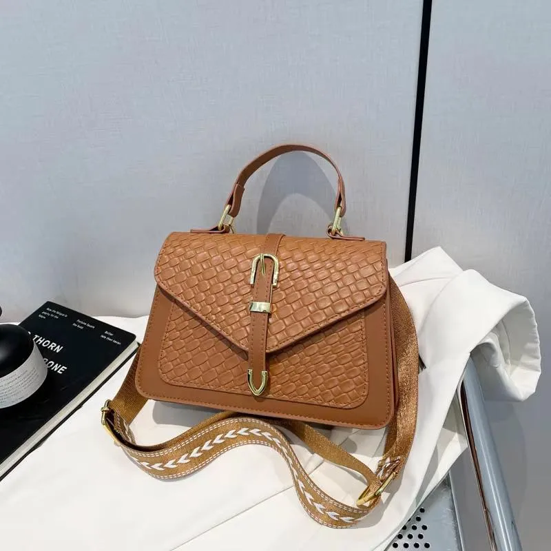 Luxury Woven Women's Handbag 2025 | Trendy PU Leather Clutch Bag with Wide Strap for Ladies