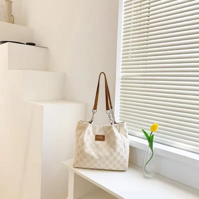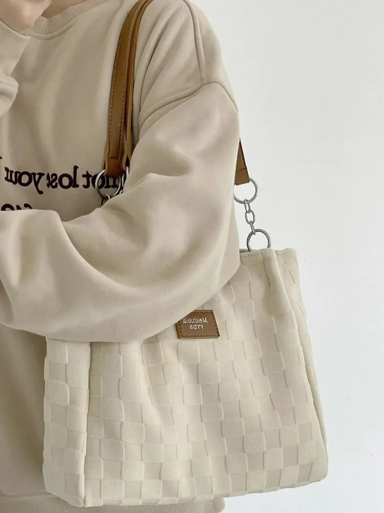 Portable Travel Women Padded Nylon Top-handle Bag, Quilted Lattice Shoulder Bag, Large Capacity Fashion Zipper Tote