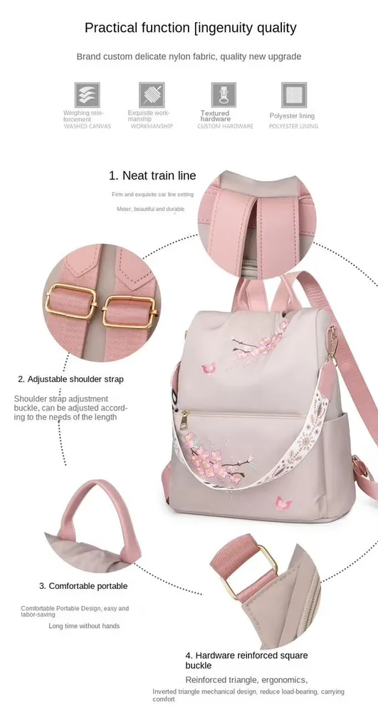 High-Quality Women's Nylon Backpack - Large Capacity Urban Casual Student Bag with Zipper
