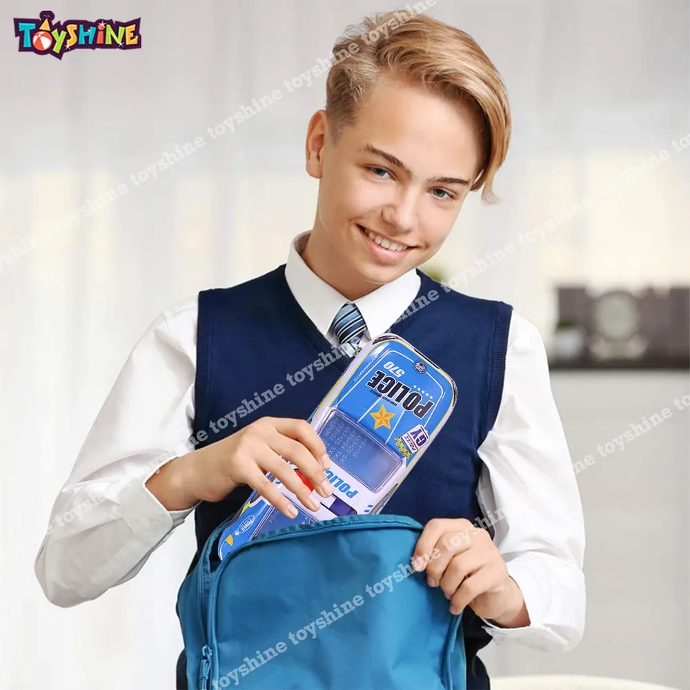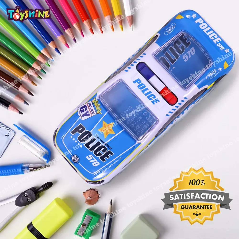 Toyshine Police Metal Pencil Box, Detailed Exterior, Double Comparment for Kids - Blue