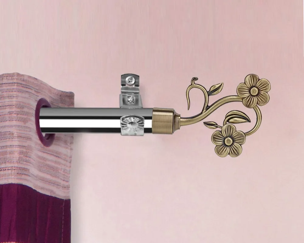 Arena Alloy Zinc Modern Stander Curtain Brackets Set (Antique Brass, Medium) -Pack Of 2