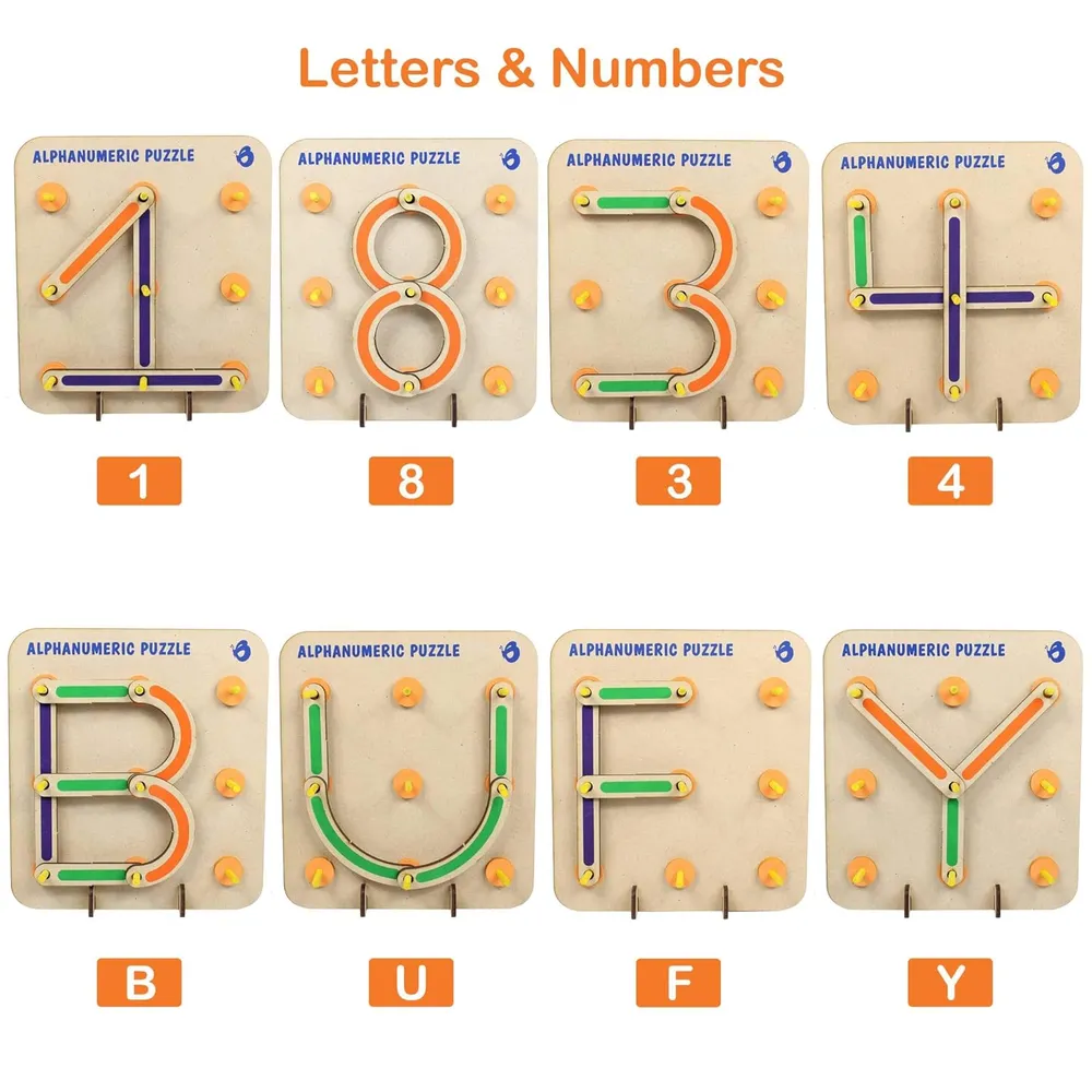 ButterflyEduFields Wooden Alphabets Numbers Construction Puzzle Toys for 3 4 5 year old Girls Boys | Learning & Educational Toy | Montessori Activ