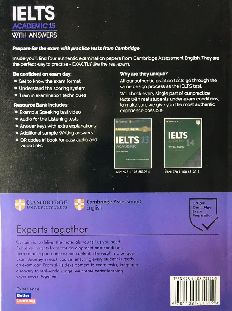Cambridge IELTS 15 Academic Student's Book with Answers with Audio with Resource Bank: Authentic Practice Tests (IELTS Practice Tests) NEW EDITION Pap
