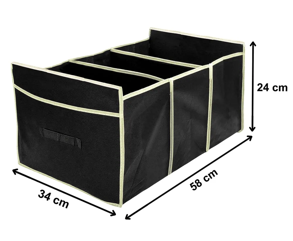 Package Contents: 1 Pcs Foldable Trunk Organizer Material : Non-Woven, Color: Black Product Dimensions: 58cm x 34cm x 24cm Keep Your Car Trunk Organized : The perfect solution to easily organ... Read More