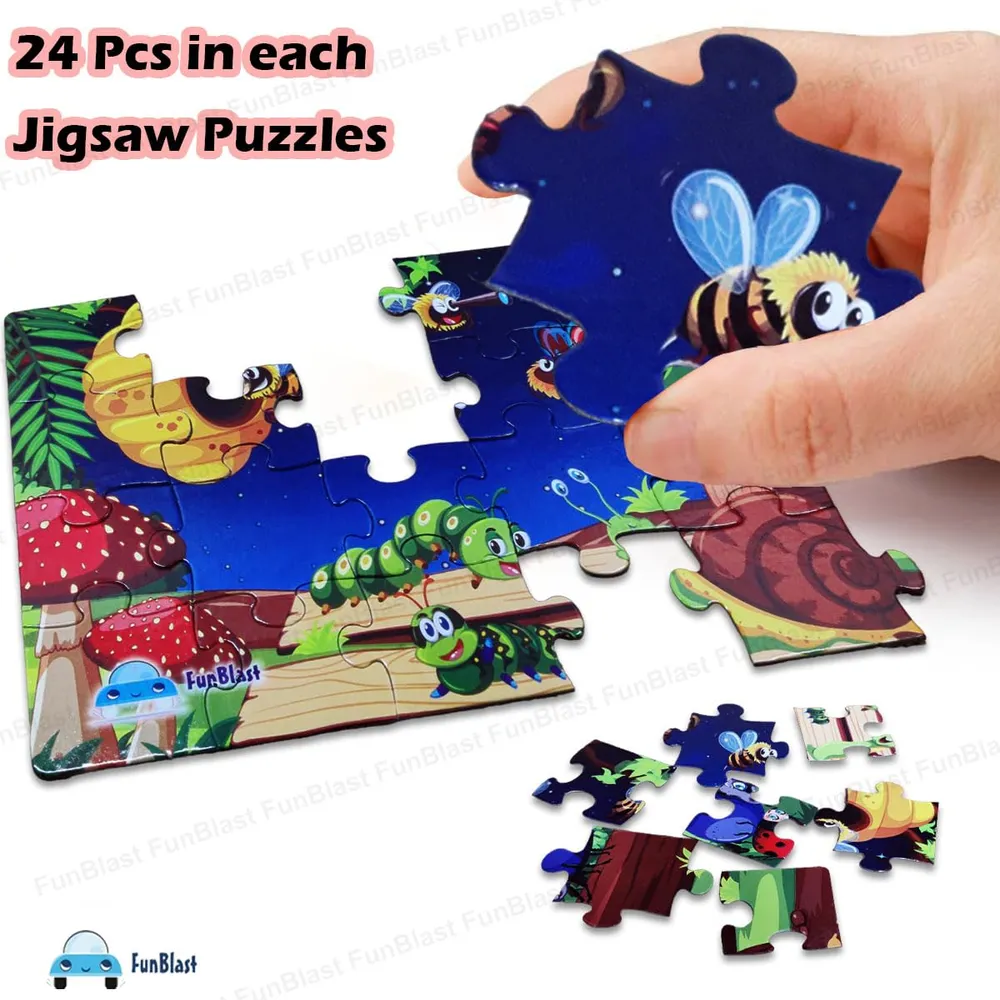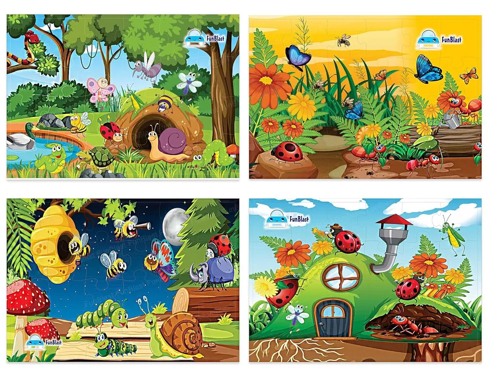 FunBlast Jigsaw Puzzles for Kids, Insects Jigsaw Puzzle for Kids, Floor Puzzle for Children, Learning and Educational Jigsaw Puzzle Toys, Set of 4-96