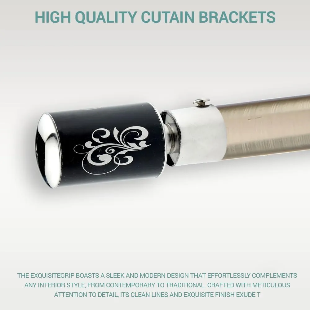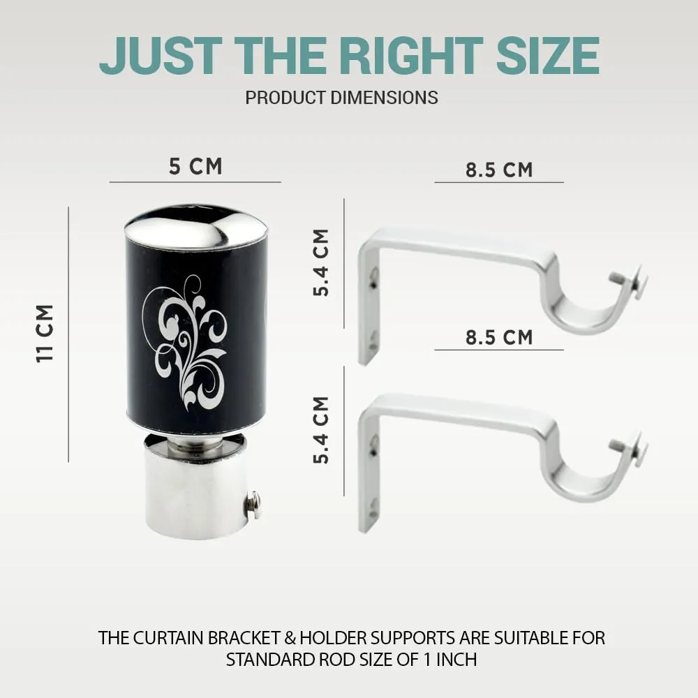 GLOXY Manjira Shape Stainless Steel & ABS Curtain Bracket Parda Holder with Support 1 Inch Rod Pocket Finials Designer Door and Window Rod Support