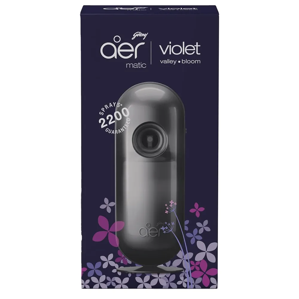 Godrej aer Matic Kit (Machine + 1 Refill) - Automatic Room Fresheners with Flexi Control Spray | Violet Valley Bloom | 2200 Sprays Guaranteed | Lasts
