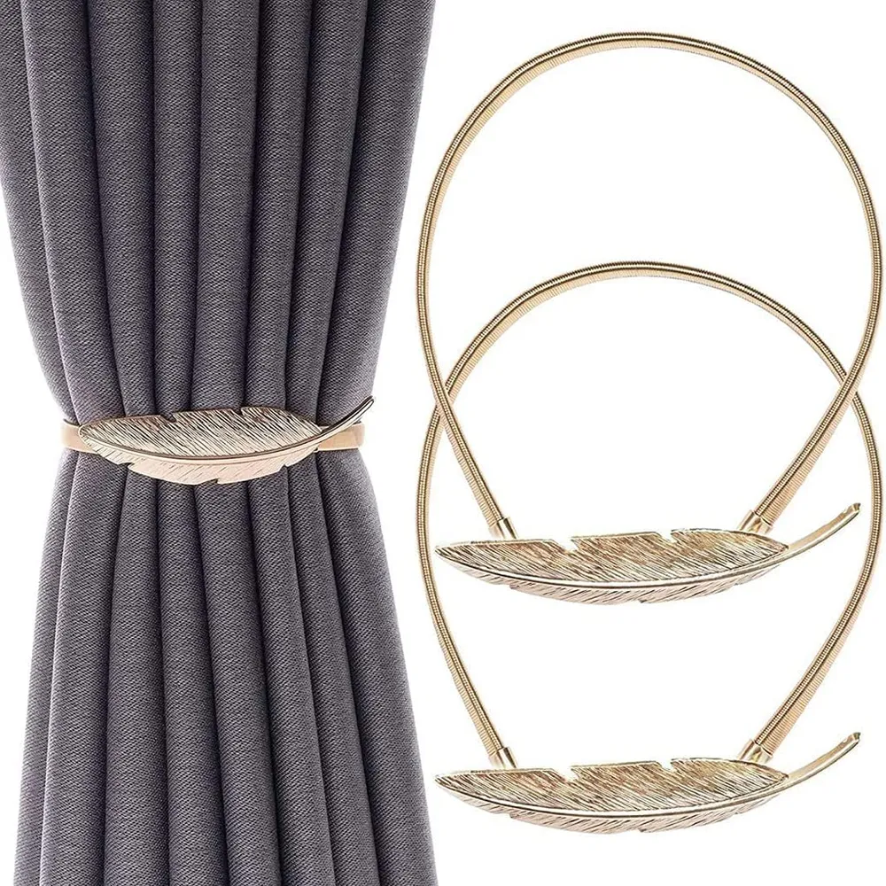 HASTHIP® 2Pcs Magnetic Curtain Tieback Creative Tieback Elastic Alloy Strap Boutique Feather Closure Tieback for Window Curtain, Grommet Window Drape