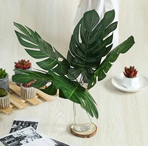 Improvhome 6 Pcs Artificial Flower Plant Big Monstera Palm Leaves for Gifting, Office Desk, Garden, Pot for Shelf, Bedroom, Balcony, Living Room, Farm