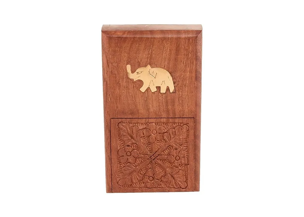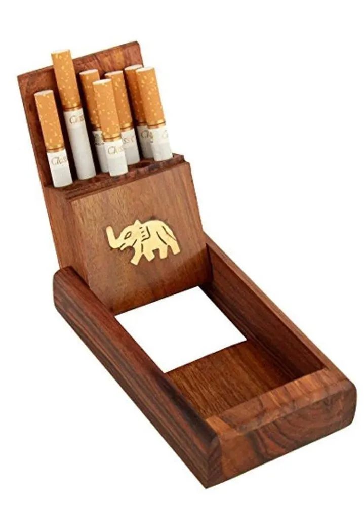 Kesha WoodKraft Rosewood Sheesham Wood Pocket Cigarette Case Holder Stand (4.96 X 2.68 X 1.12 inch, Brown), Perfect to Keep 10 Cigarettes