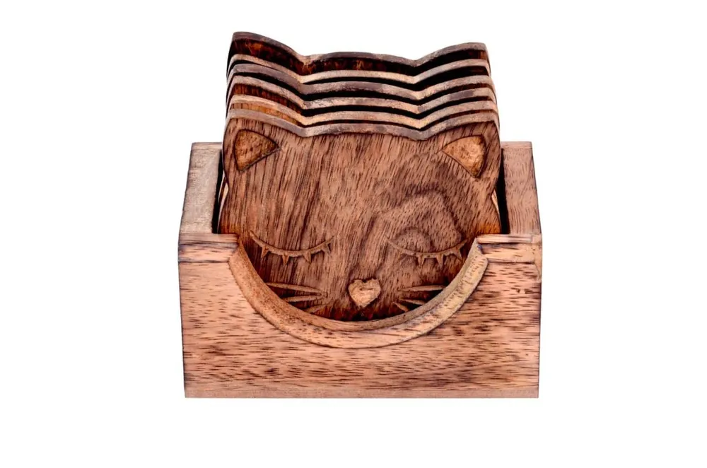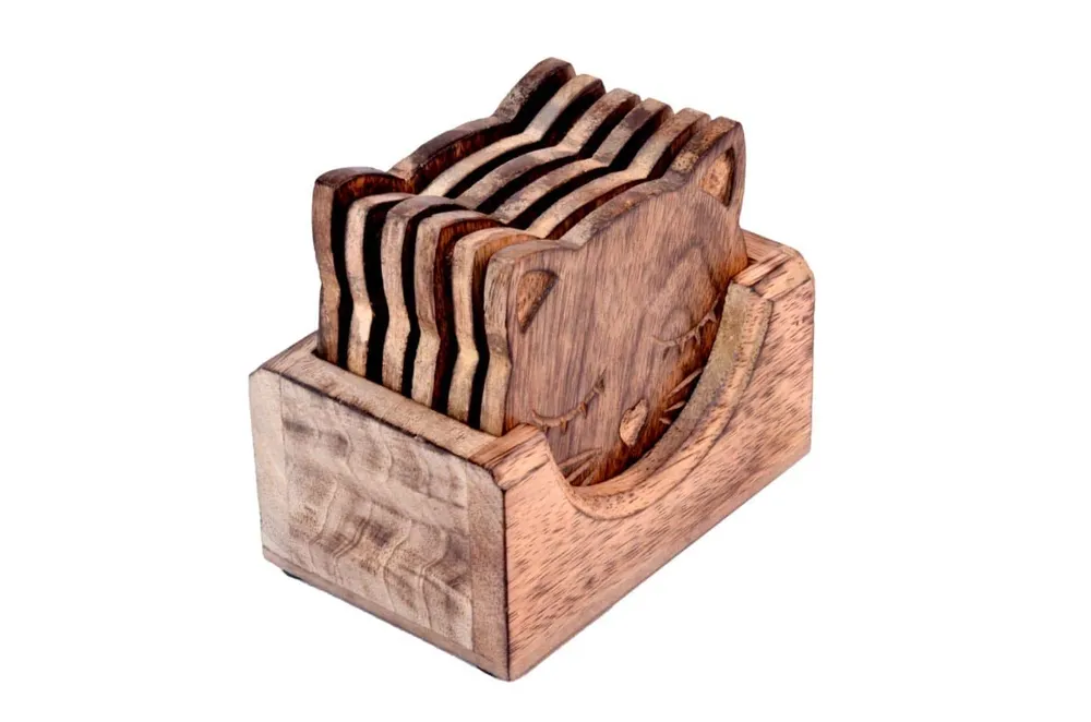 Kesha Woodkraft Wooden Handcrafted Owl Design Coasters for Drinks-Hot & Cold/Wooden Coaster Sets with Holder/Dining, Tea & Coffee Table Decora