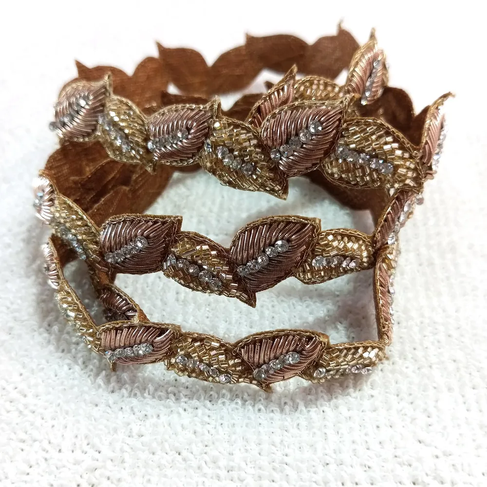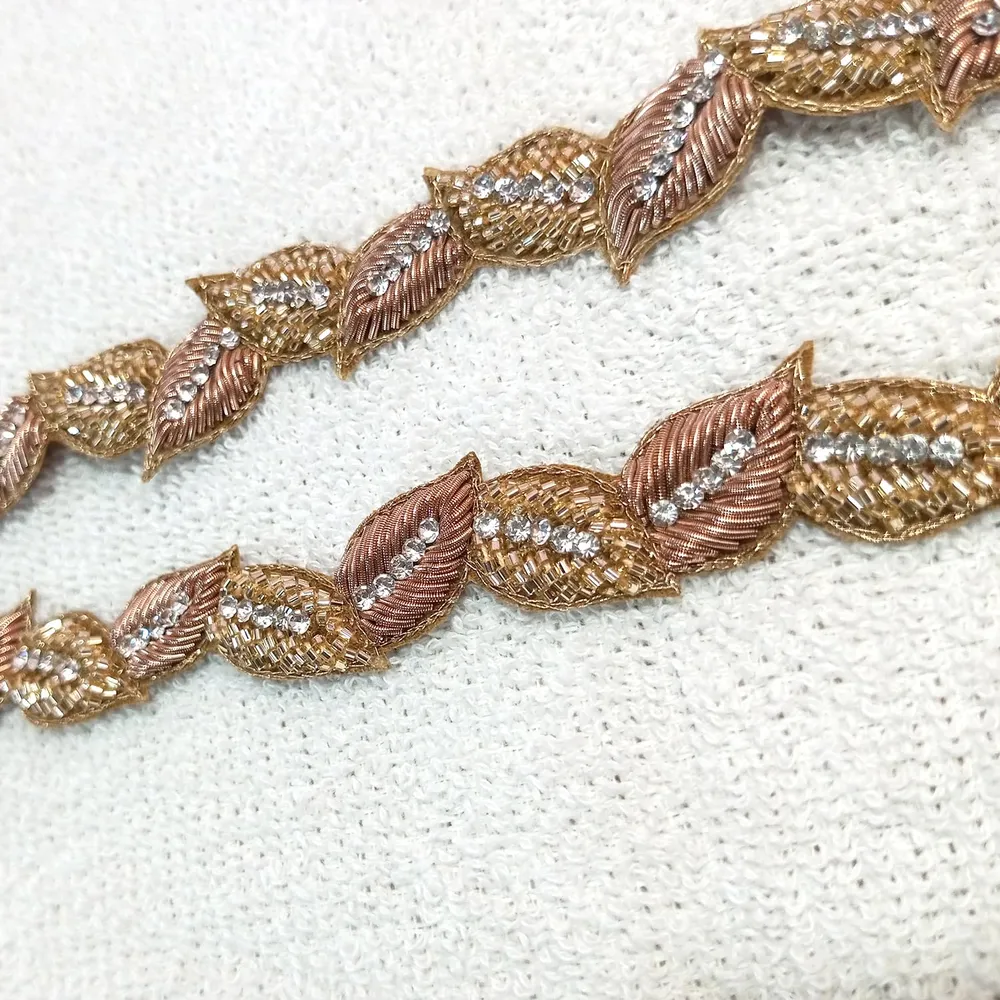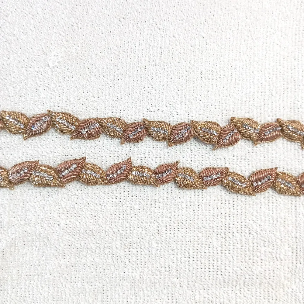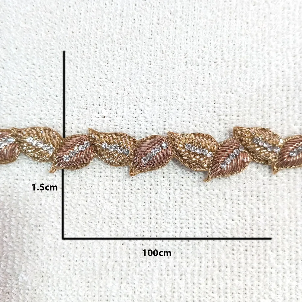 Lovetholy 1Meter Zardosi Lace Border Patch Work Leaf Design Embroidery Sew On Applique Patches for Clothes, Blouse, Dress, Jackets, Saree (1Pcs, LBDR1