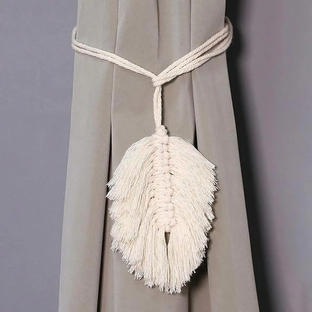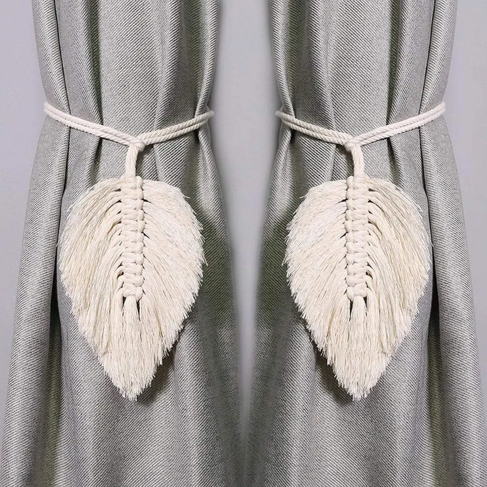 MACNGRID Curtain Tiebacks Natural Cotton Leaf Tassel Ropes Handmade Window Sheer Decorative Holdbacks Vintage Rural Style Drapery Tiebacks Simple Knot