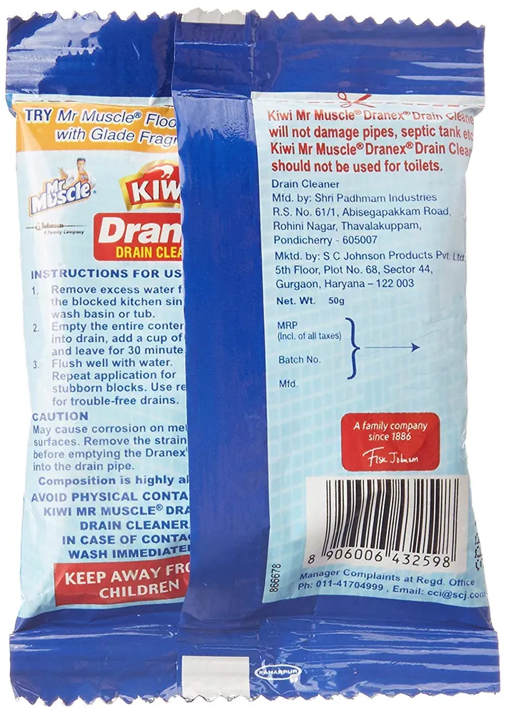 Mr. Muscle Dranex Drain Cleaner - Heavy Duty, 50g Pouch clean powder wash powder
