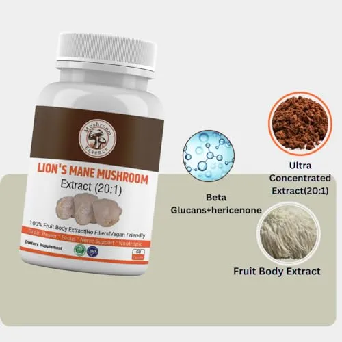 About this item Mushroom Essence Lions Mane Mushroom Extract capsule (60 Veg Caps) Each capsule contains 500mg of potent Lion's Mane mushroom extract Rich in Hericenones and Beta-glucans... Read More