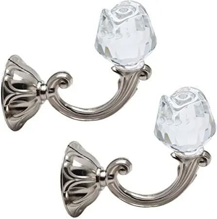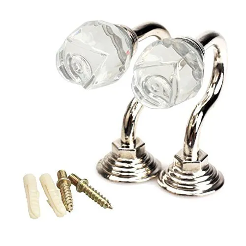QZibeva 2 Pieces Silver Crystal Curtain Tie Back Style Hold Backs Curtain Buckle Wall Hooks Coat Hangers Drapery Hooks Tassel Holder for Room Window D
