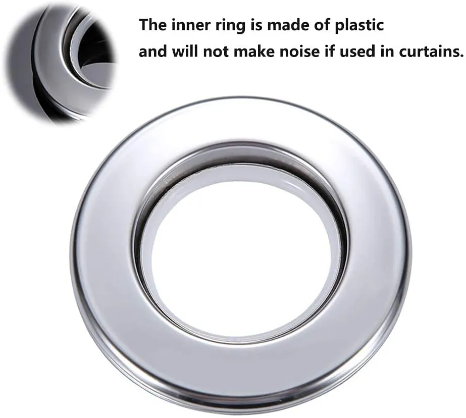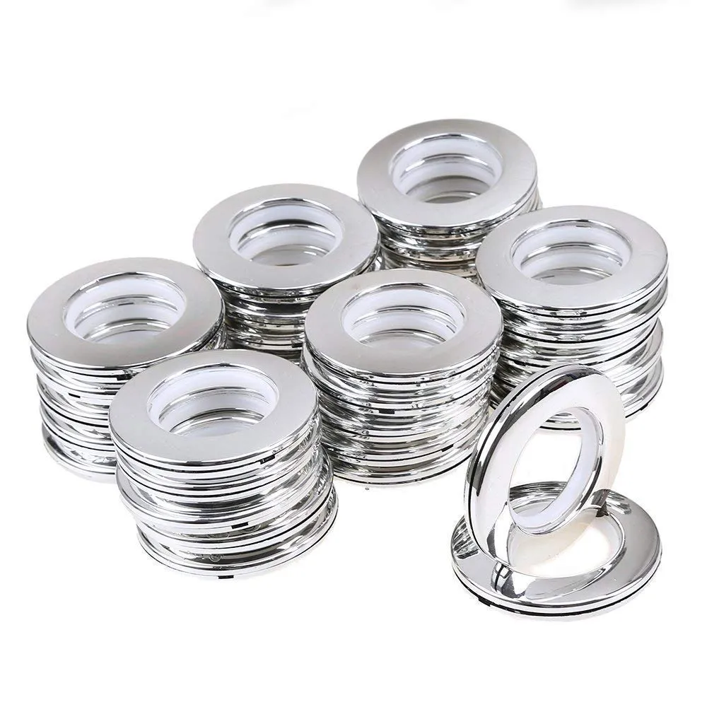 QZibeva Pack of 24 Piece Glossy Male Female Silent Inside Plastic Double Sided Curtain Rings for Door and Window Curtains Eyelet Curtain Rings Silver