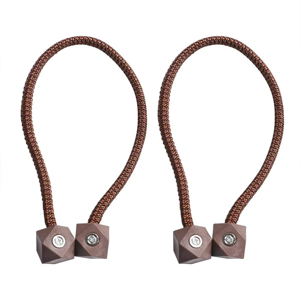 RAMCHA Hexa Polyester and Magnet Curtain Drapery Holdbacks Binding Tie Band Tiebacks for Living Room Decoration (Medium, Dark Brown), Set of 2 Pieces