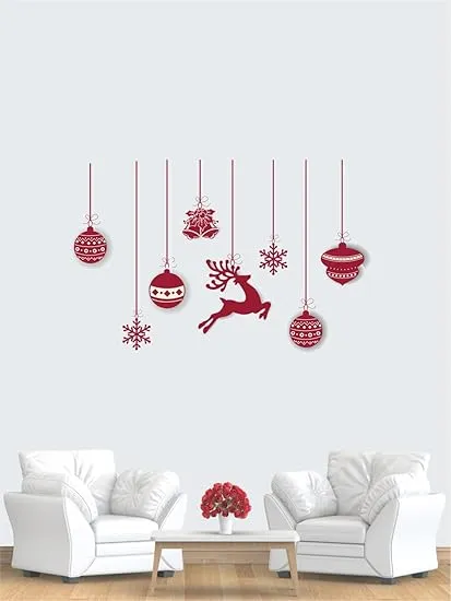 Rawpockets ' Christmas Hanging Decorative ' Self Adhesive Wall Sticker (Pack of 4) (FROM INDIA FAAZ)