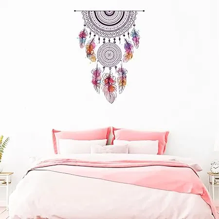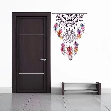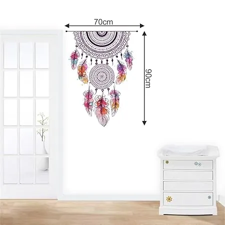 Rawpockets Shivering Boho Feather Dream Catcher Decor for Living Self Adhesive Wall Sticker(Pack of 2) (FROM INDIA FAAZ)