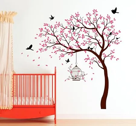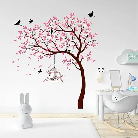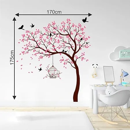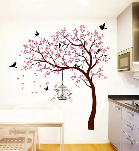Rawpockets Tree with Birds and Cage Self Adhesive Wall Sticker (Pink) (FROM INDIA FAAZ)