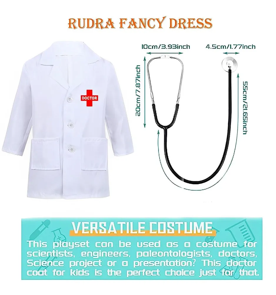 Rudra Fancy Dress Doctor Coat & Nurse dress for Kids | Doctor Lab Coat Costumes for boys & girls | Nurse Costumes for girls | Community Helper