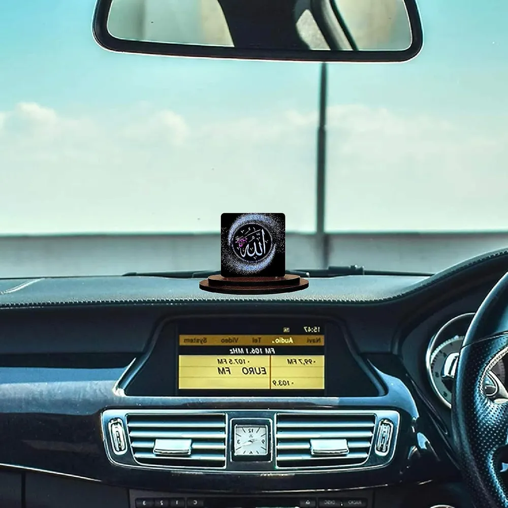 SIGNOOGLE Islamic Muslim Theme Wooden Printed Car Dashboard Idol Showpiece Accessories for Gift Table Home House Decor L x H 3 x 3 Inches