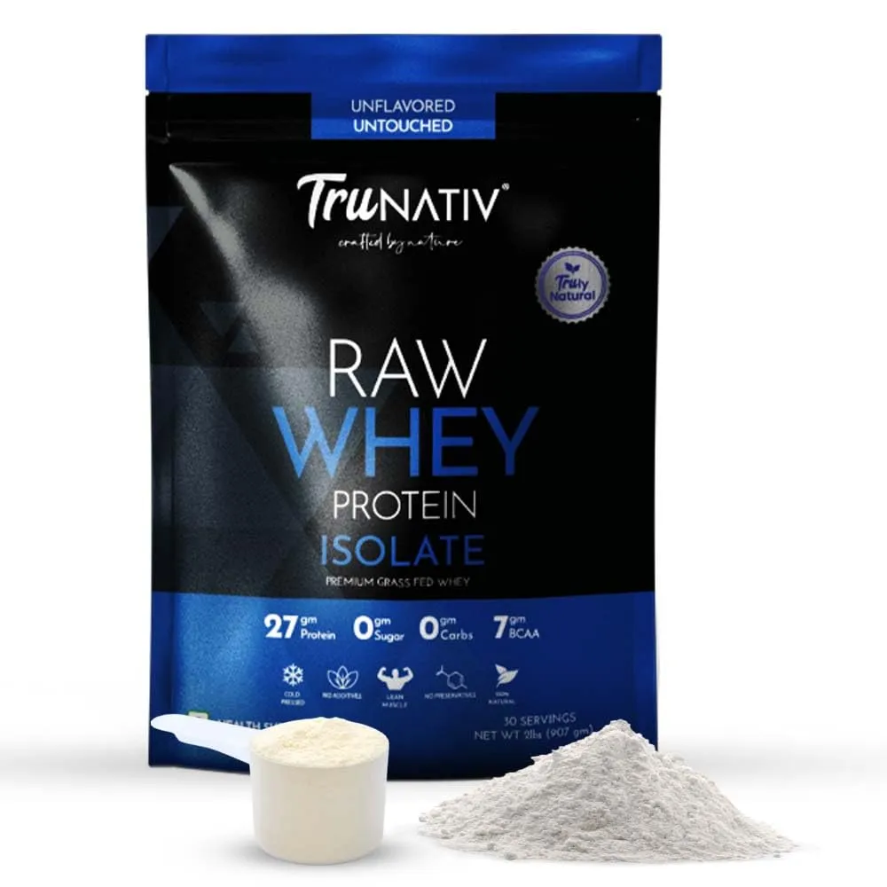 TruNativ Raw Whey Protein Isolate Powder| 27g Protein (7g BCAA) | Enhances Lean Muscle Mass | No Added Carbs & No Added Sugar | Unflavoured 900g Prote