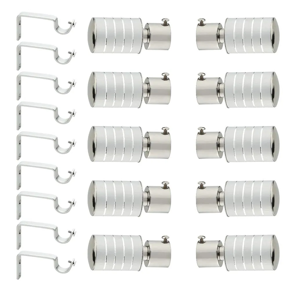 Welson Stainless Steel Curtain Bracket Parda Holder with Support 1 Inch Rod Pocket Finials Designer Door and Window Rod Support Fittings, Curtain Rod