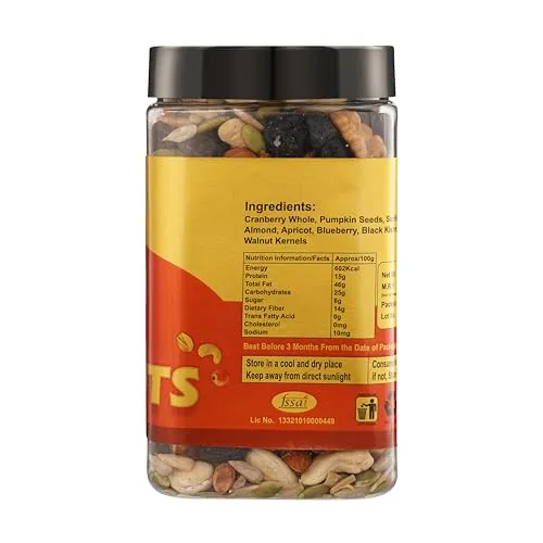 About this item Premium Mix: Includes almonds, cashews, walnuts, pistachios, raisins, cranberries, pumpkin seeds, sunflower seeds, dried apricots, and figs. Immunity Booster: Packed with antio... Read More
