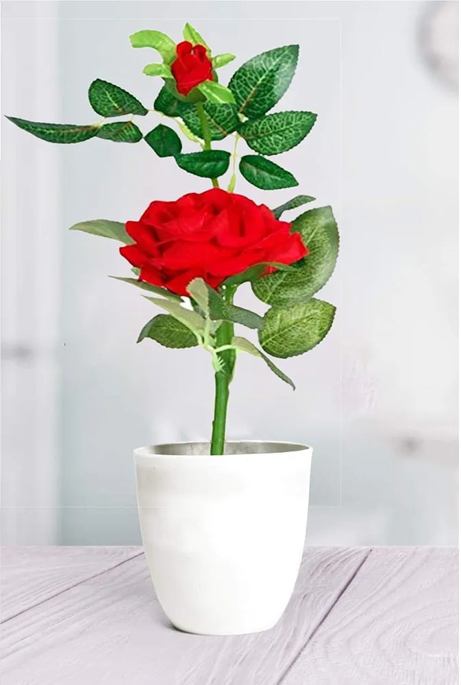 Litleo Artificial Rose Flower Plant with Pot (Yellow Flowers) Great for Home Or Office Decoration or Birthday Gift, Table Top Bonsai Artificial Plant