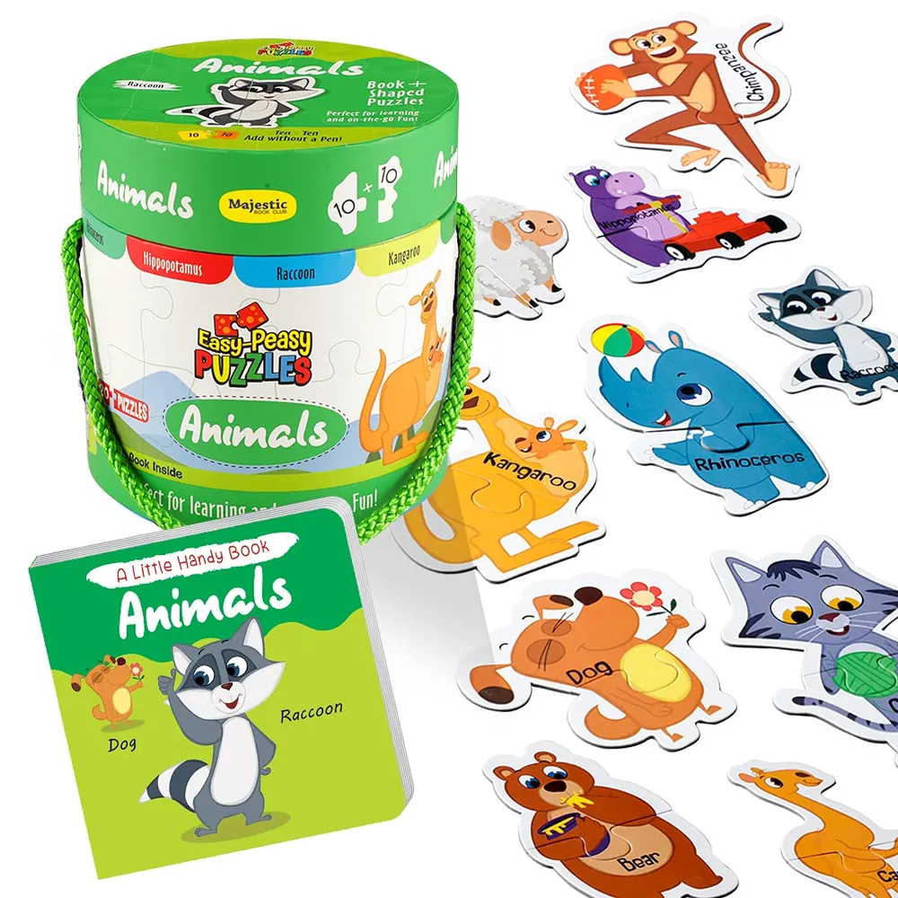The Book Tree Easy Peasy 20 Piece Big Size Animal Puzzle Set with 1 Board Book for Children