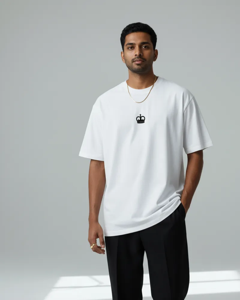 CRWN Oversized T-Shirt for Men – Premium Cotton Streetwear (Black & White)