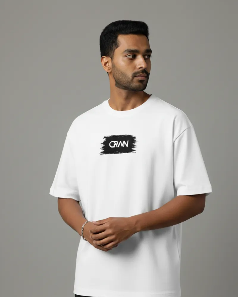 Oversized CRWN Printed T-Shirt – White, Artistic Modern Design