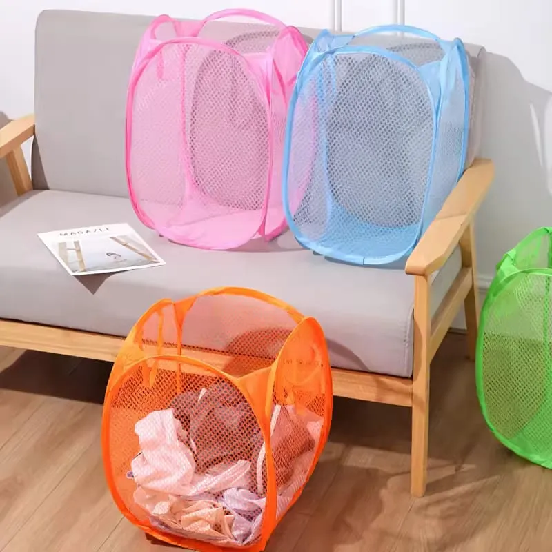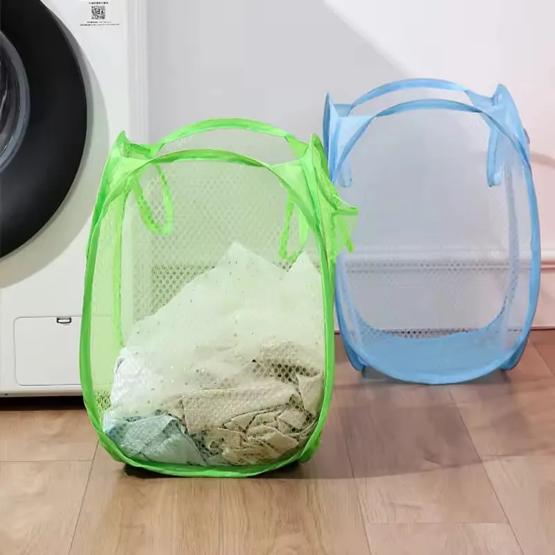 1pcs Folding Laundry Storage Basket Household Dirty Clothes Bag Light Nylon Mesh Laundry Basket Sundries Organization